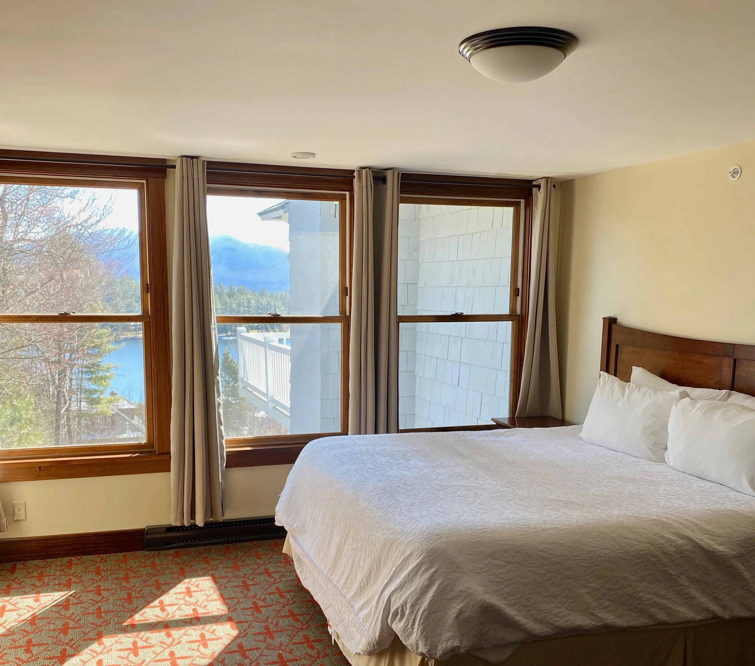 This property is operated and located next to the Crowne Plaza Hotel and guests may enjoy our indoor pool, hot tub, fitness facilities, and seasonal private beach on Mirror Lake.